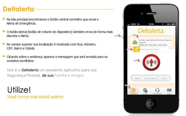 Um deles é o Deltalarme, aplicativo gratuito e disponível para os sistemas Android e iOS , foi criado dentro da Delta Omega, empresa de segurança que instala, entre outros equipamentos, câmeras e alarmes como uma extensão dos serviços de proteção. Com ele é possível trabalhar com três níveis de alerta: verde para teste, azul para mensagem rotineira e vermelha para emergência.